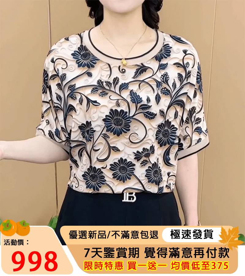 【買一送一】圓領透氣印花小衫,優質布料,柔軟舒適,很高級~品質可放心,不挑年齡身材!售後有保障,可退换貨!
